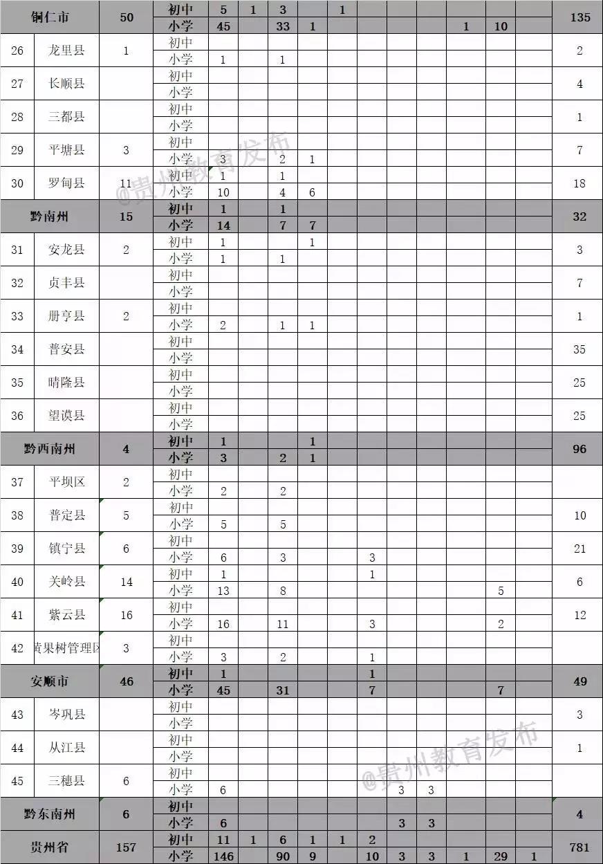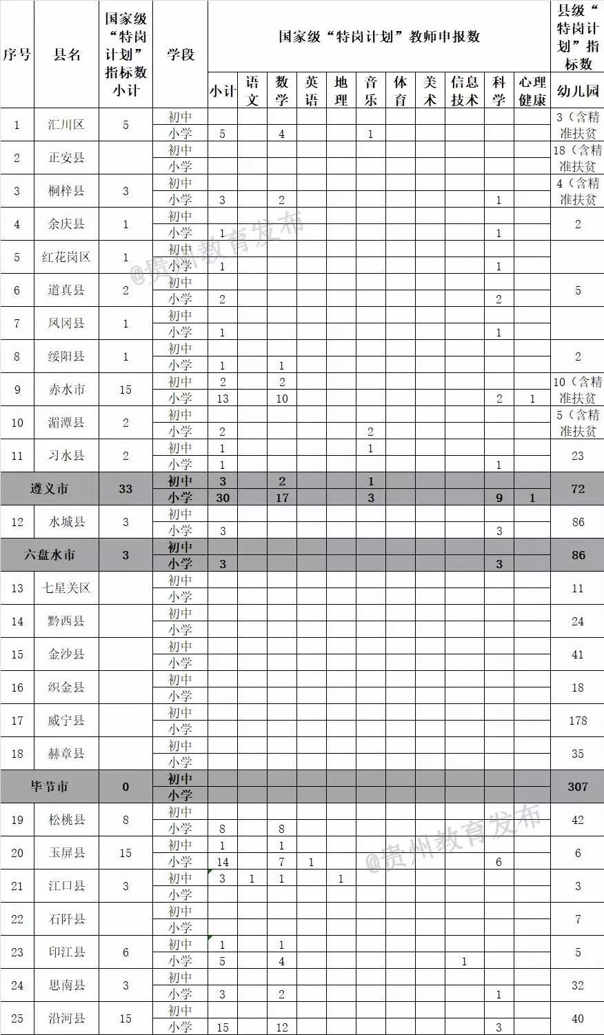 貴州省特崗第二階段招聘職位表